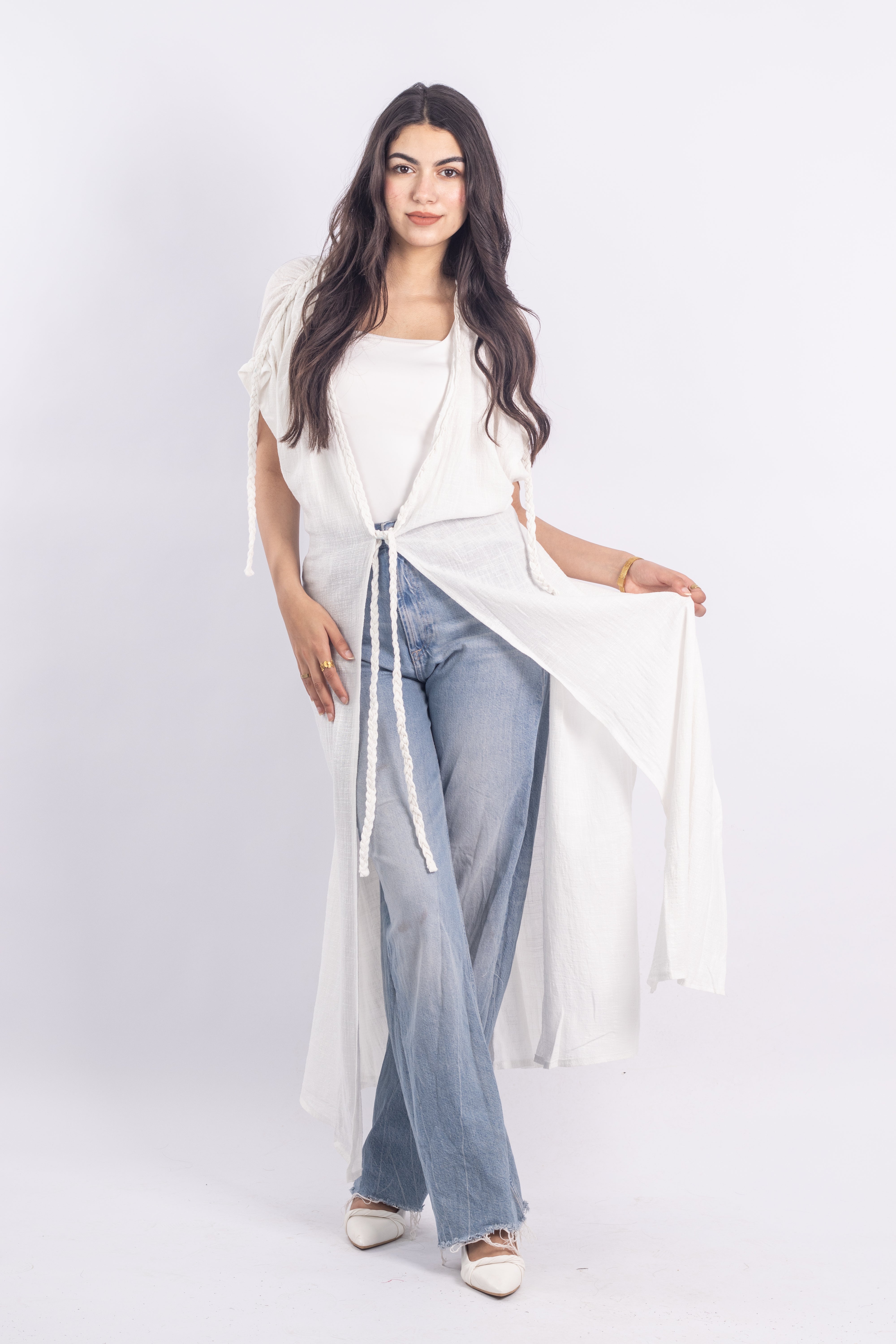 The Braided Cardigan is made from breathable linen, featuring a subtle braided touch for added texture. Lightweight and versatile, it's perfect for effortless layering.