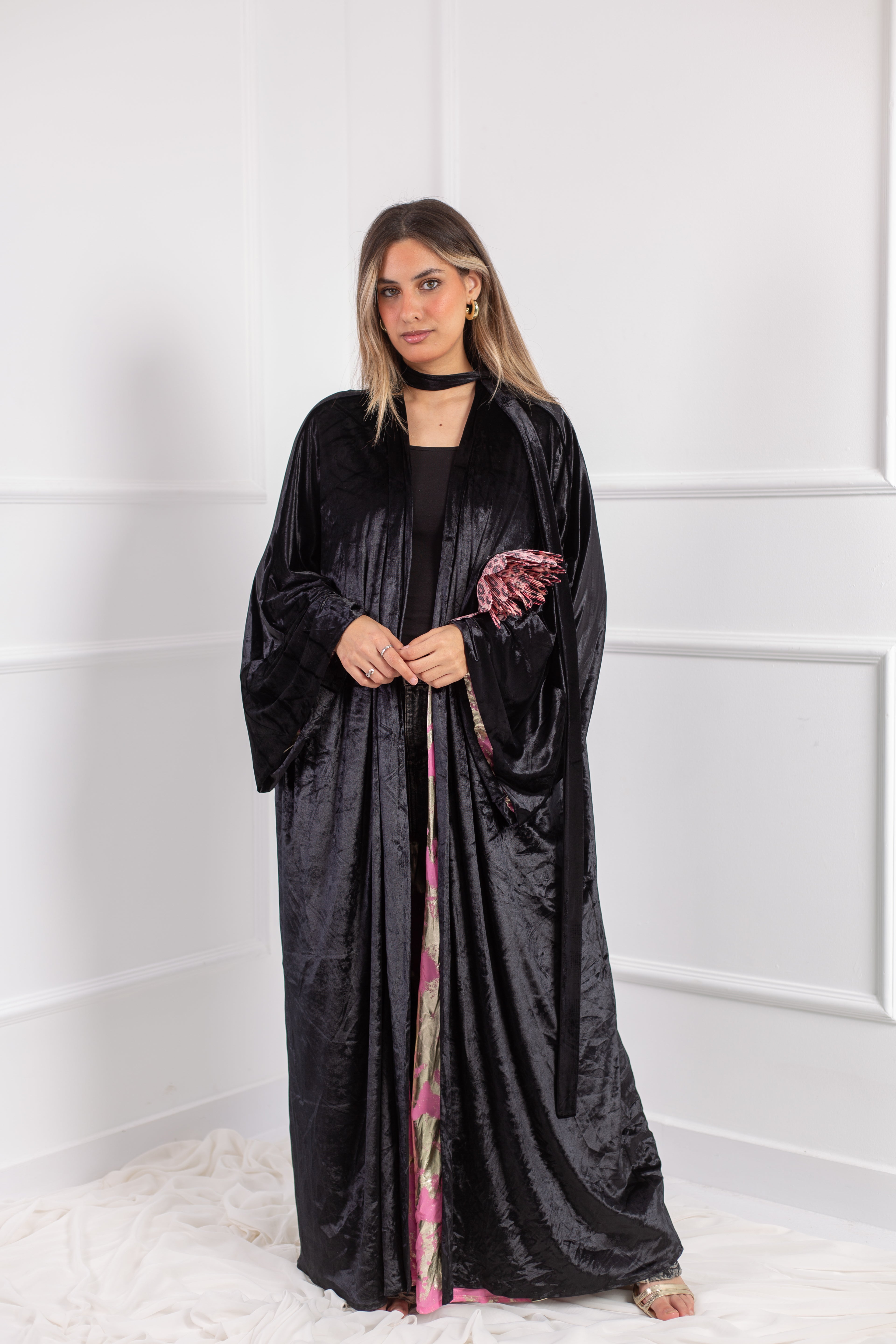 The Layl Kaftan is the perfect fusion of elegance and allure. Crafted from plush velvet with satin accents, it drapes beautifully, offering a rich texture with a lustrous touch. Designed for effortless sophistication, this kaftan is a statement of timeless grace and refined style.