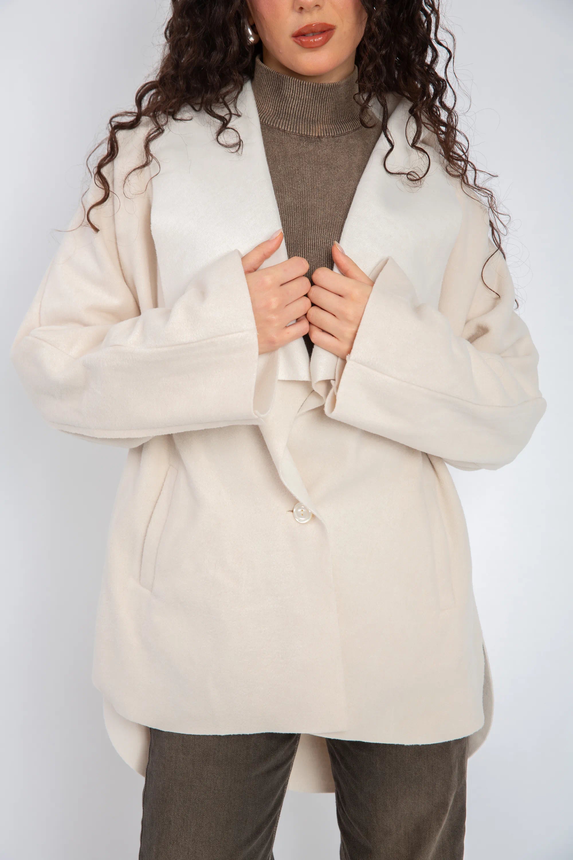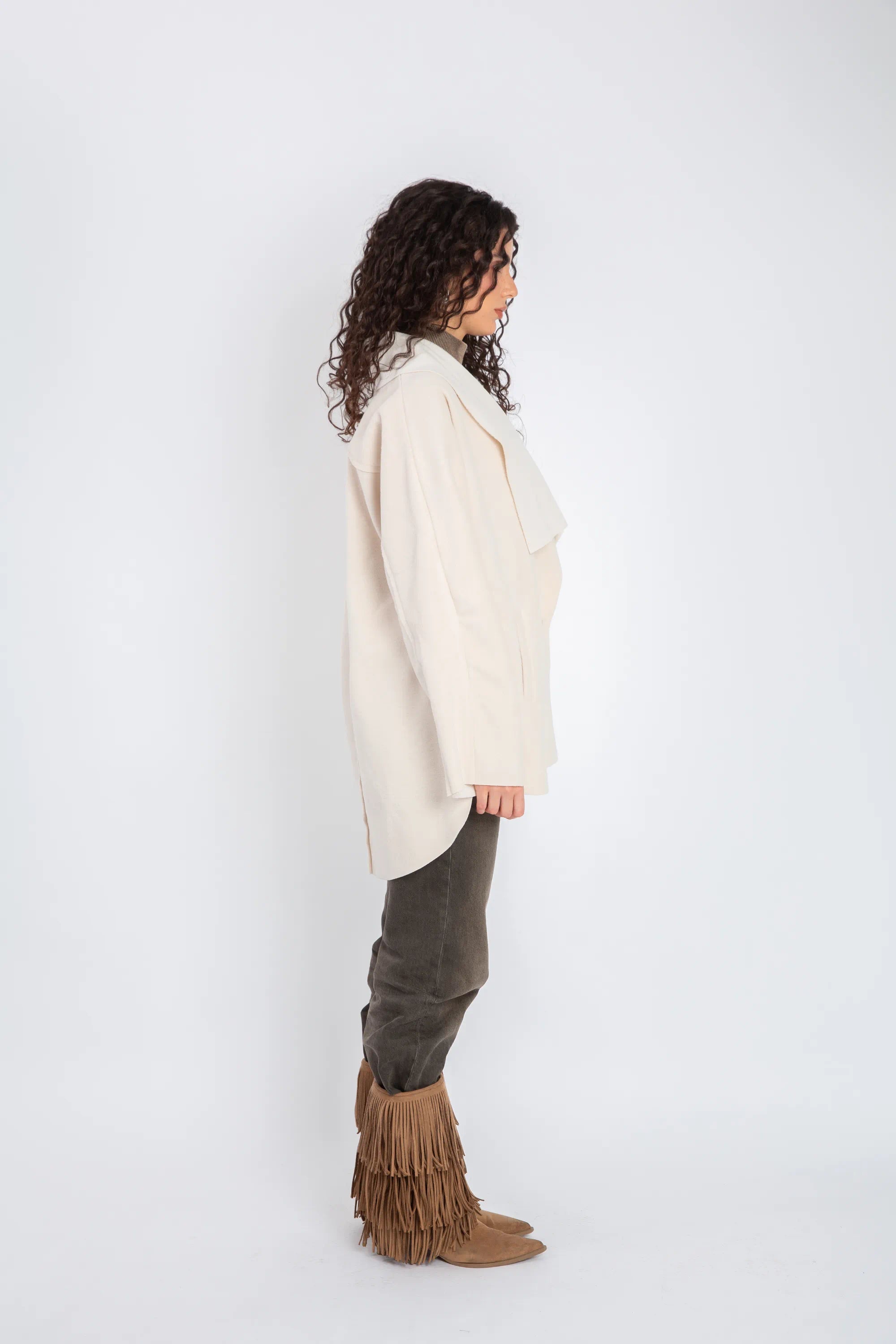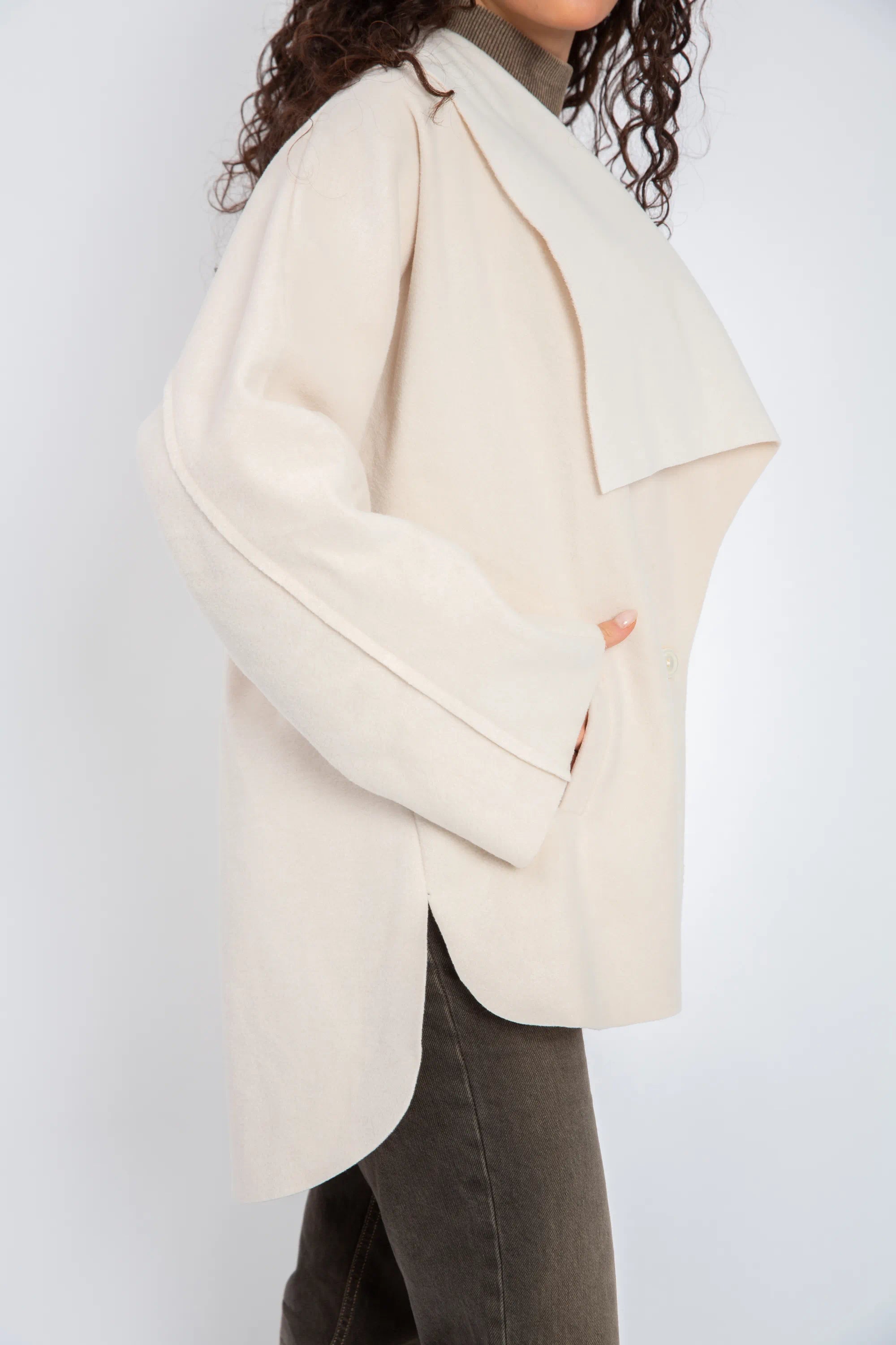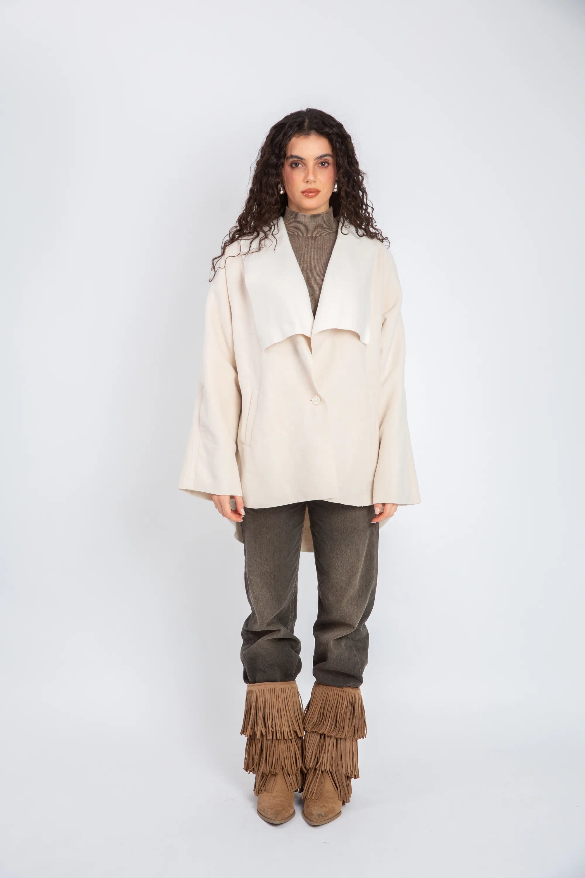 The Supreme Jacket is crafted from soft wool with a relaxed, draped silhouette that brings effortless warmth and style. Featuring a layered collar and an easy oversized fit, it’s the perfect winter piece for cozy, elevated looks.